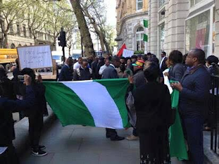 Some Nigerians in the UK are currently in front of the Nigerian High Commission demanding that President Buhari comes out to address them.